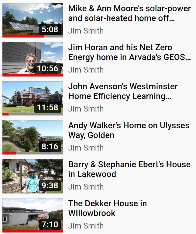Denver and Boulder have taken steps to push alternatives. Here and there individual action has occurred. In Westminster, John Avenson in 2017 ordered his natural gas meter removed after maximizing the passive solar potential of his house. (YouTube video tour of John’s home.) In Arvada, Norbert Klebl developed 30 homes without natural gas in a project called GEOS. In Basalt, two affordable housing complexes have been built without natural gas. An all-electric hotel is under construction in Snowmass. North Vista Highlands is slowly taking shape in Pueblo. In Fort Collins, plans have been drawn up for Montava, a 500-unit project.